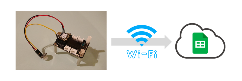 発信したデータはWiFiを経由してスプレッドシートに書き込まれます。
